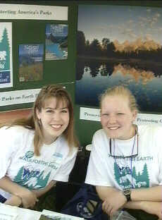 Kim O'Connell, left, and Katherine Heinrich, both of Washington, D.C. expressed concern about plans to close many national parks, especially in underfunded urban areas already suffering from neglect. Katherine showed me another project of NPCA, an acquisition of land in the Kansas Flint Hills, the largest remaining area of tallgrass prairie, probably America's most threatened major ecosystem.