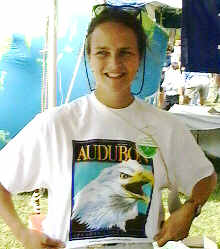 Katie from New York City, wanted to make certain that the regal visage of the bald eagle of her Audubon Society shirt appeared in my photograph of her. It's just a shame how more frequently they're seen on t-shirts than they are sighted flying overhead. Like so many others at Earth Day XXV Katie's top concern was action on the Endangered Species Act. And like so many others, Katie recognizes the need to create economic value from natural resources, while not over-exploiting them. Katie pointed out that the Audubon Society had their www site up and running in their tent out in the Mall; an impressive effort, even if it was hard to view the screen in the glaring sun and bands of thunder showers.